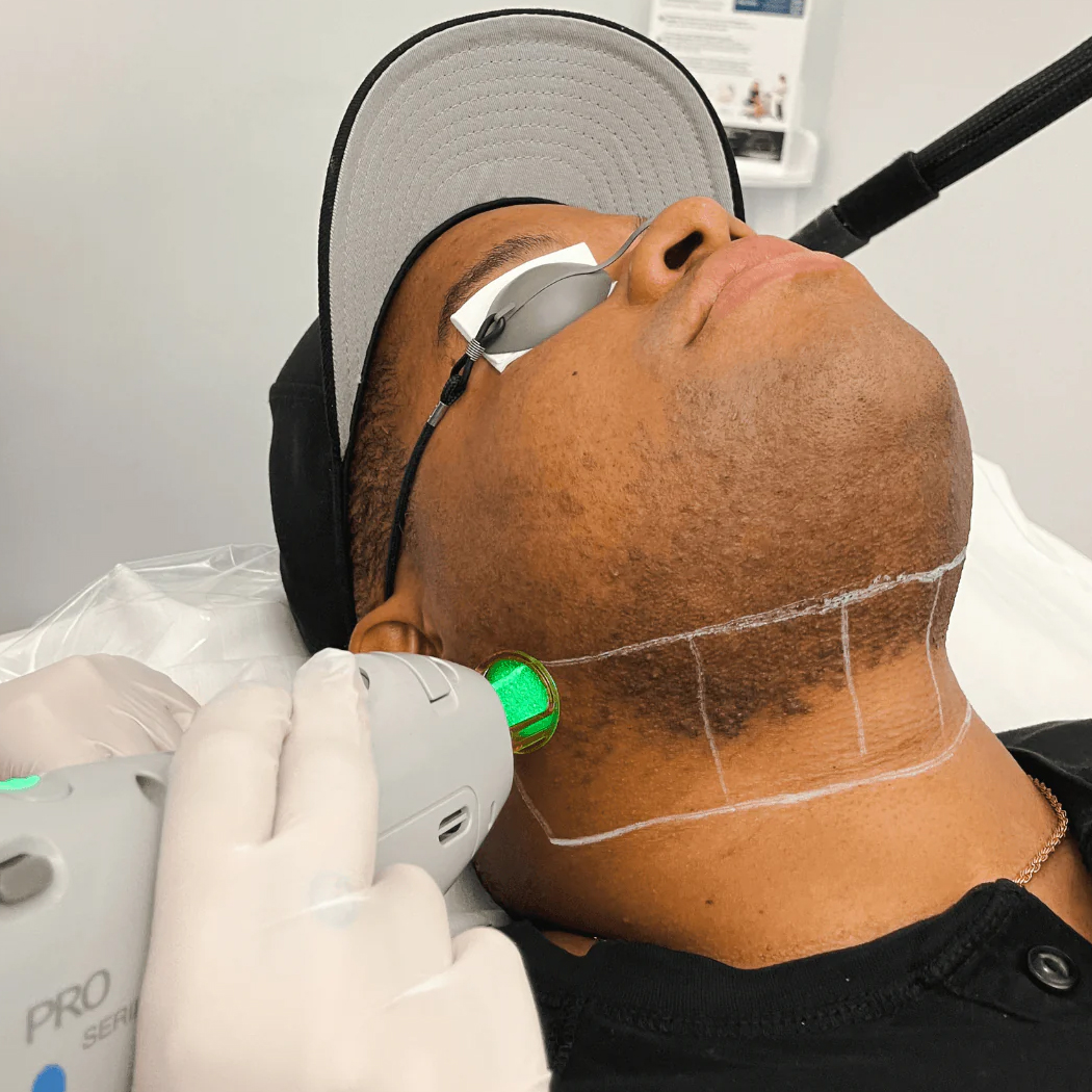 Enhance beard definition with laser hair removal for the beard and neck, reducing unwanted hair, irritation, razor bumps, and frequent shaving for a sharp, clean look.